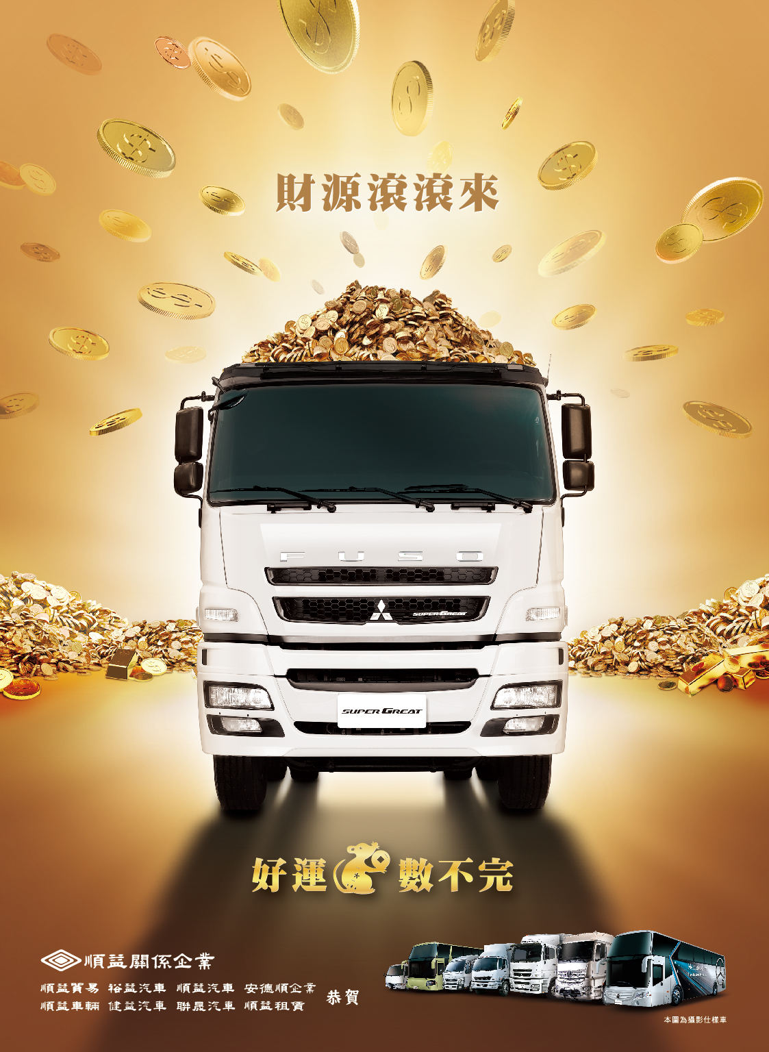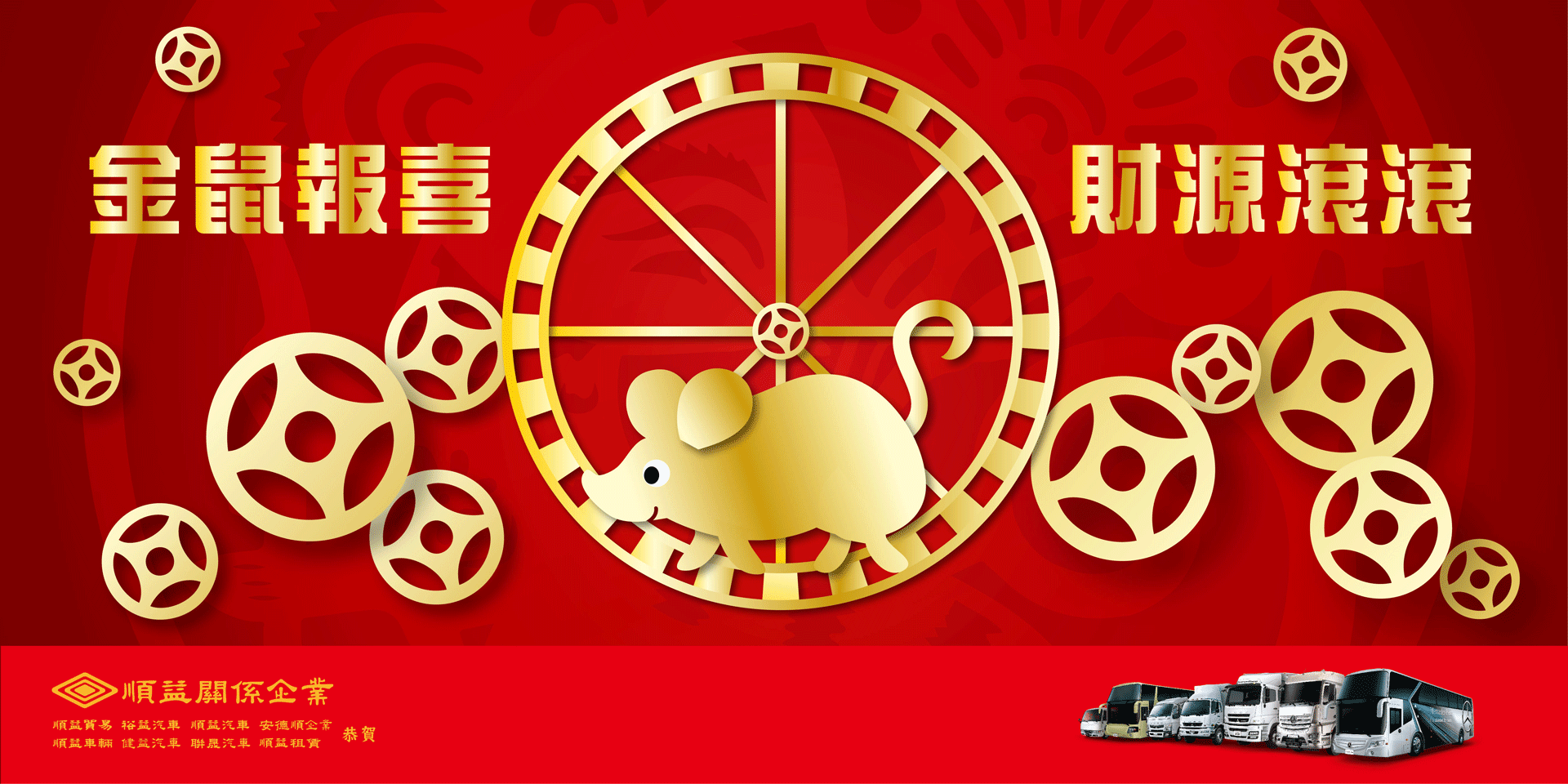 鼠年到 好運到~「順益關係企業 裕益汽車」在此恭祝敬愛的事業夥伴與車主,庚子年裡【財源滾滾來‧好運"鼠"不完】!