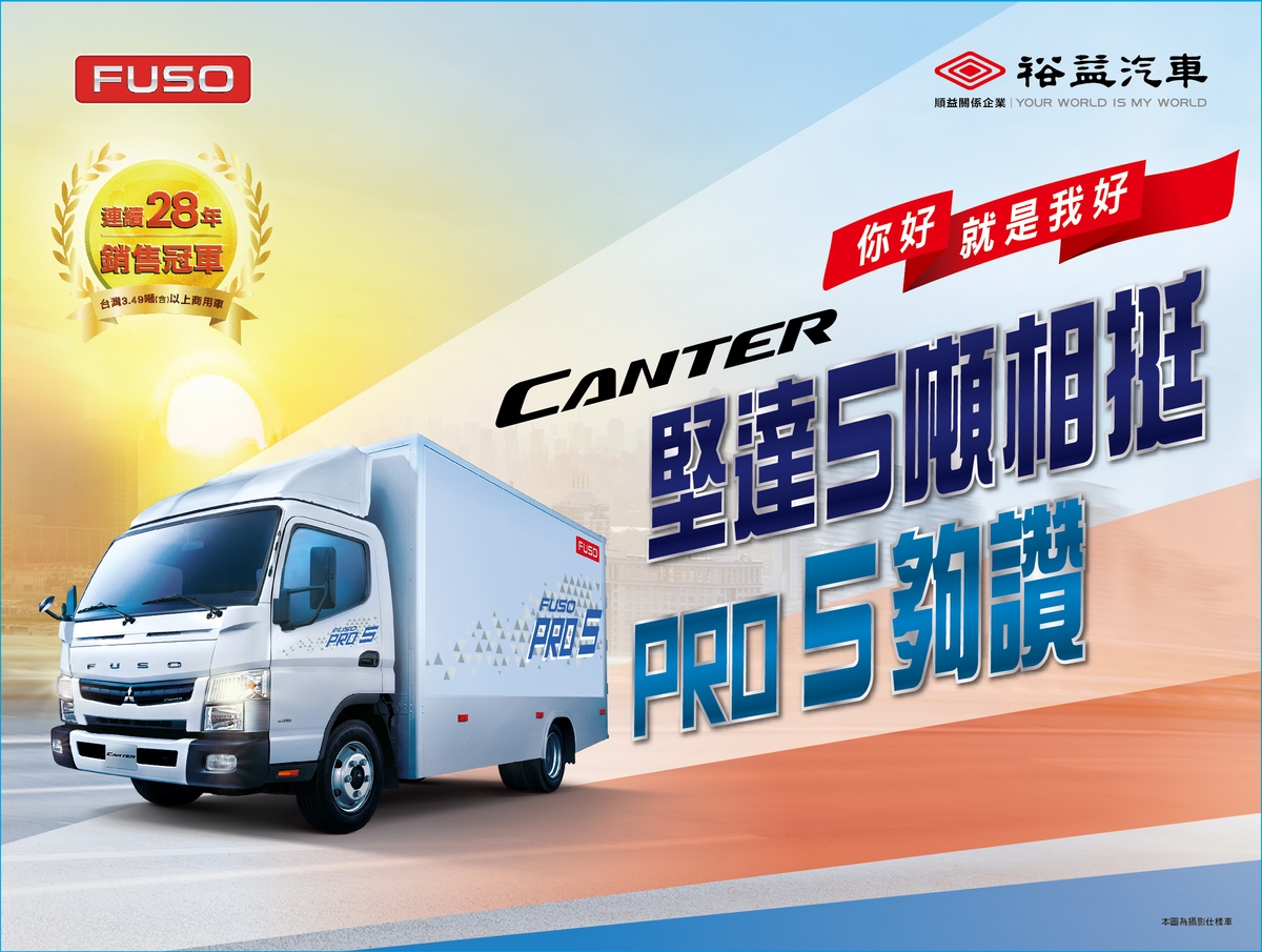 連續28年(1992~2019)銷售冠軍的FUSO堅達車系,長久以來是頭家車主們的第一選擇,也是文武百市最重要的事業夥伴;為了提供頭家車主們更好的用車選擇,『順益關係企業 裕益汽車』配合政府5噸貨車新制法規近期即將上路,於7月10日在裕益汽車全新基隆商用車據點率先推出「FUSO PRO 5堅達5噸貨車」,並將在7月15日~8月15日於全台進行戶外巡迴展,以5噸來填補3.49噸巿場真空帶,不僅載更多,而且五期車車價對車主更是大利多,此次推出台數有限,巿場預估「FUSO PRO 5堅達5噸貨車」將帶來新一波搶購熱潮。今年FUSO 3.49噸所有新車已銷售一空,仍有許多客戶等候中,因此配合5噸貨車新制法規推出五期「堅達5噸PRO 5」車型來解決巿場急需。FUSO 堅達5噸PRO 5車型有底盤車及框式貨床車,引擎最大排氣量為2, 998cc不但省稅金,而且最大馬力達150ps及扭力37.7kgf-m,動力輸出強勁又環保。變速箱的部份,有傳統5速手排及深受市場好評的6速AMT自手排兩種設定。最重要的是,承襲FUSO的高標安全訴求,配備四輪碟煞、ABS煞車系統、EBD電子煞車分配系統、BOS煞車優先系統及斜坡起步輔助系統(限AMT車型)。至於車主關注的載貨空間,則維持傳統百業常用的10呎半、11呎及14呎三種底盤尺寸,能滿足車主各式載貨需求。此外堅達5噸還有一項新亮點,全車配備「整合式行車視野輔助系統」,7吋觸控式螢幕整合行車視野輔助及音響系統,採用4鏡頭全車環繞攝影,清楚呈現車輛前、後及兩側視野範圍,並隨時攝錄行車狀況,安全更有保障。而且全車系可享動力系統3年或10萬公里保固。