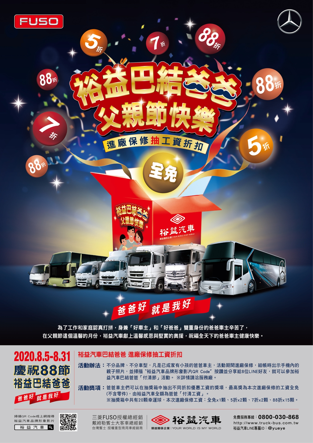 慶祝88節 裕益巴結爸爸【2020/08/05~2020/08/31】