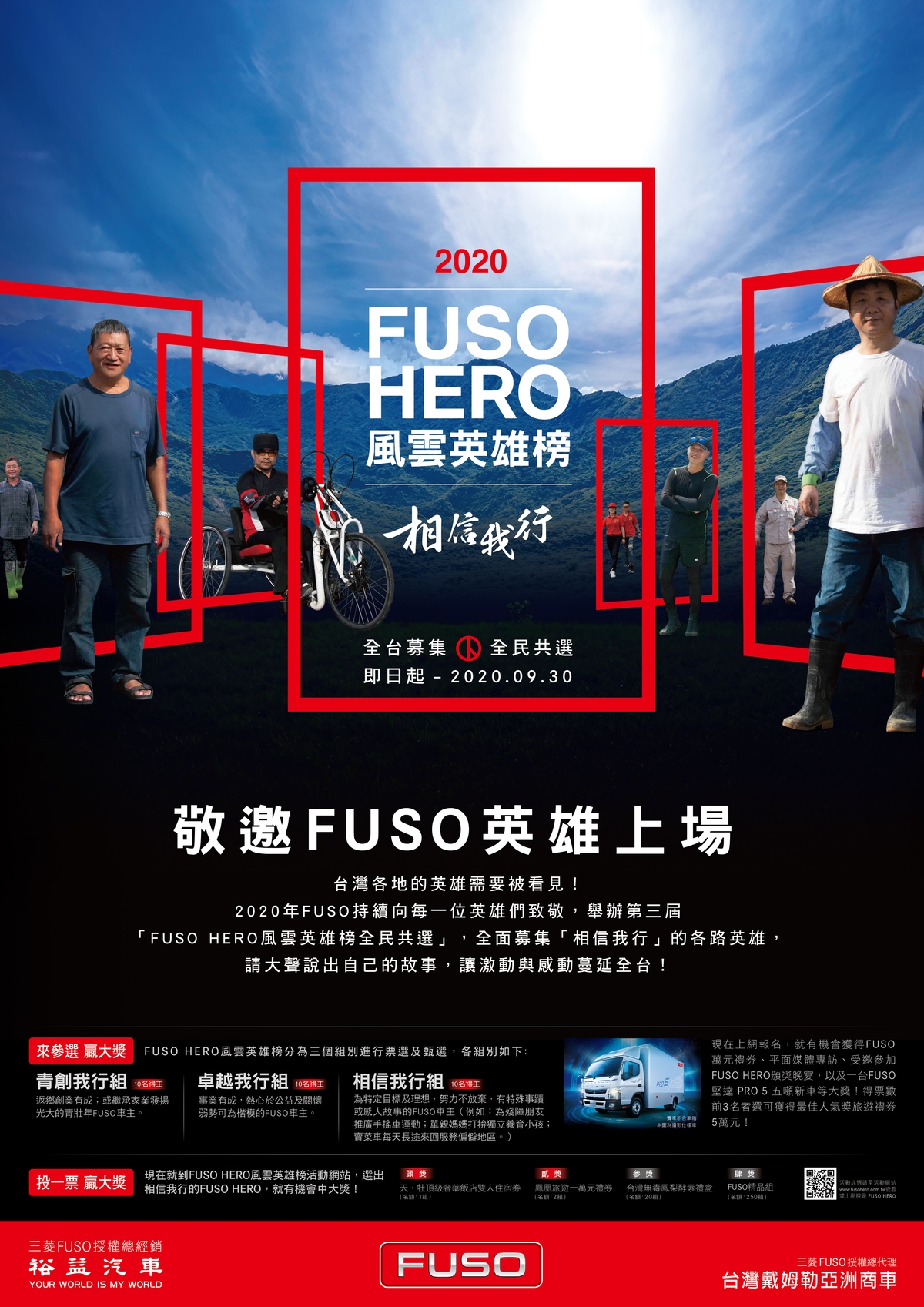今年第三屆「FUSO HERO風雲英雄榜全民共選活動」勢必引起社會的廣大迴響,FUSO希望透過年年舉辦此活動,讓更多默默付出的FUSO車主能大聲說出自己的故事,獲得社會大眾的重視和肯定,也讓大家關注這群和台灣「一起運轉、深耕台灣」的英雄們,進而對台灣社會產生源源不絕的正向力量!