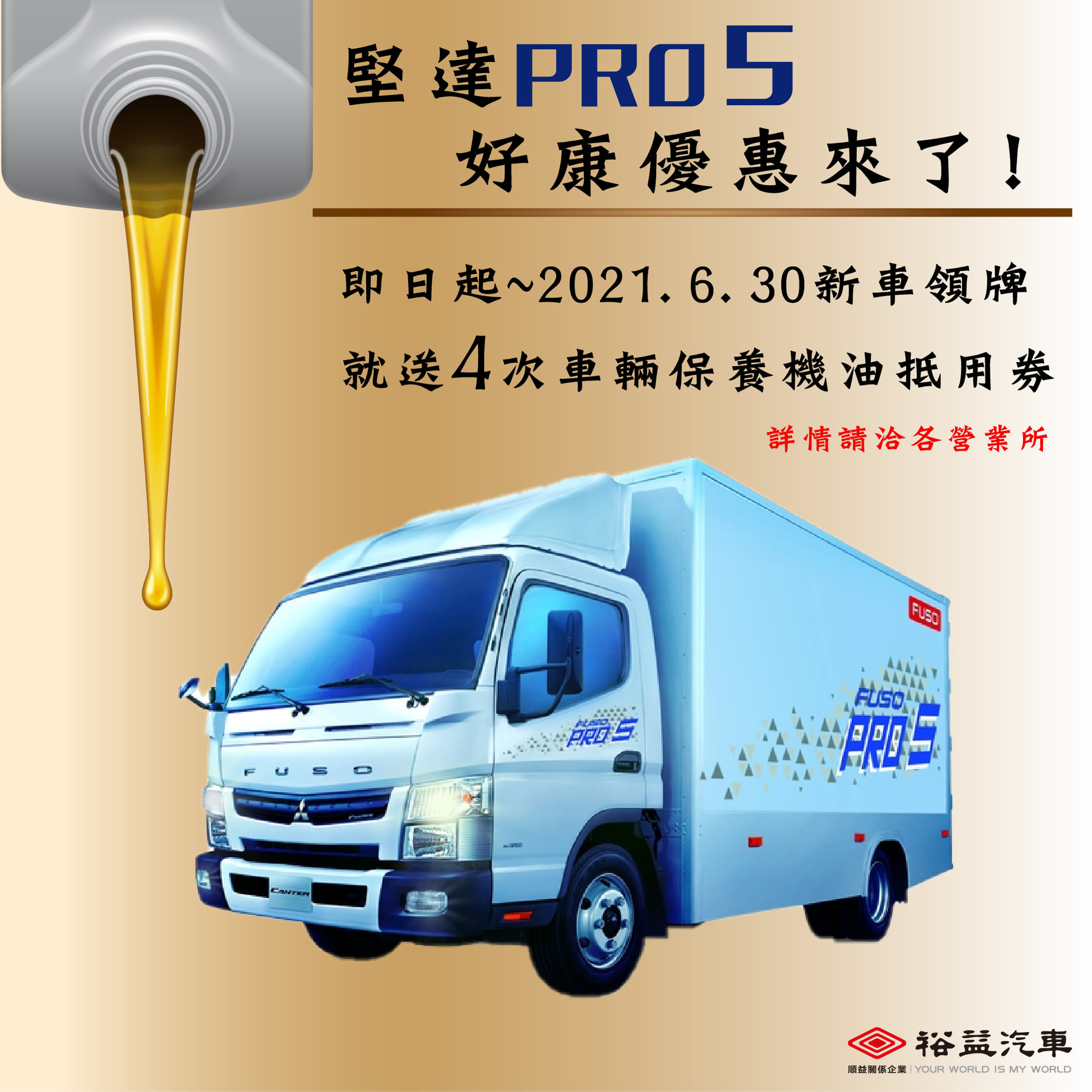 堅達油好康 PRO5車型 6月底前領牌,送4次車輛保養機油抵用券