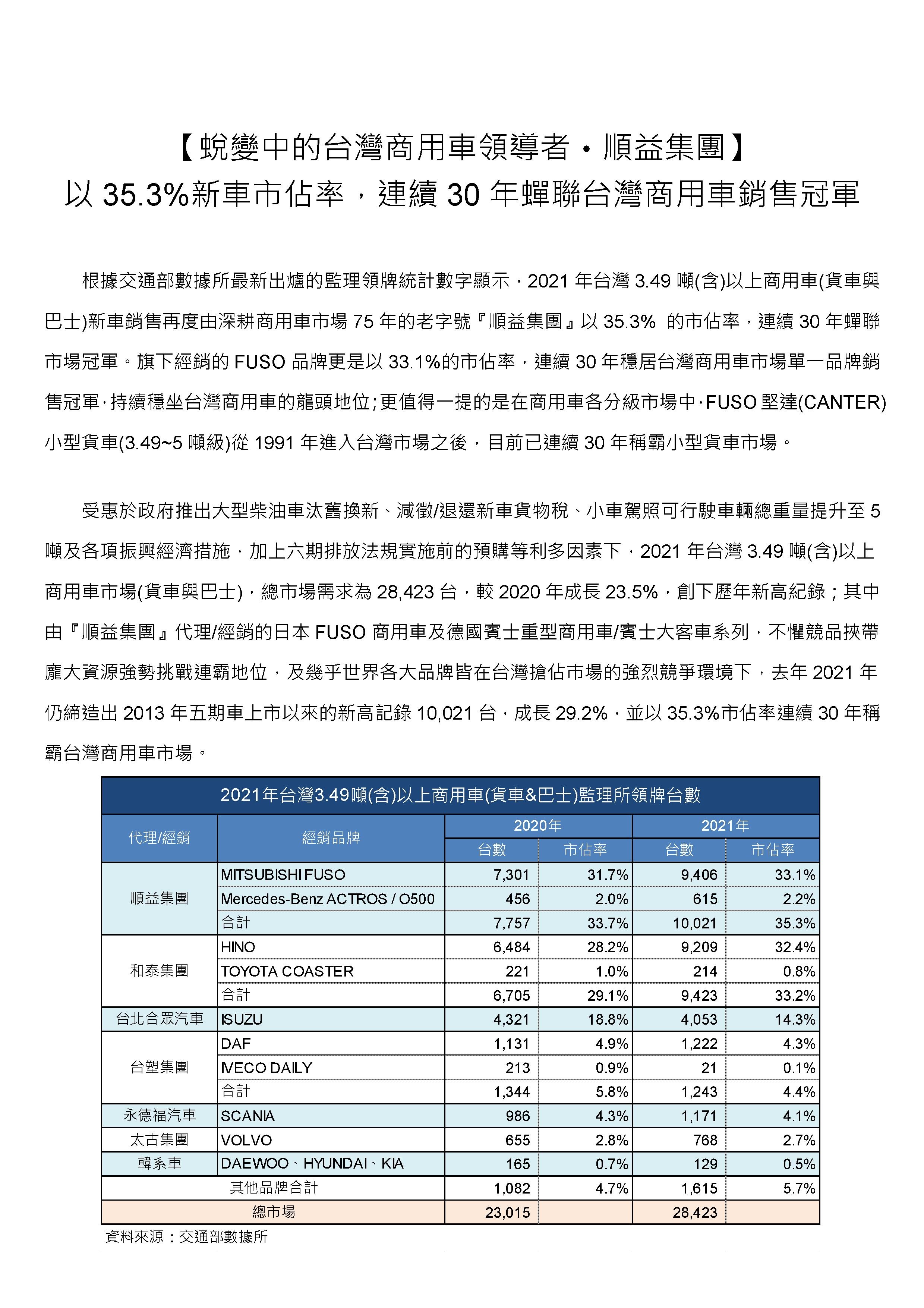 【蛻變中的台灣商用車領導者‧順益集團】 以35.3%新車市佔率,連續30年蟬聯台灣商用車銷售冠軍