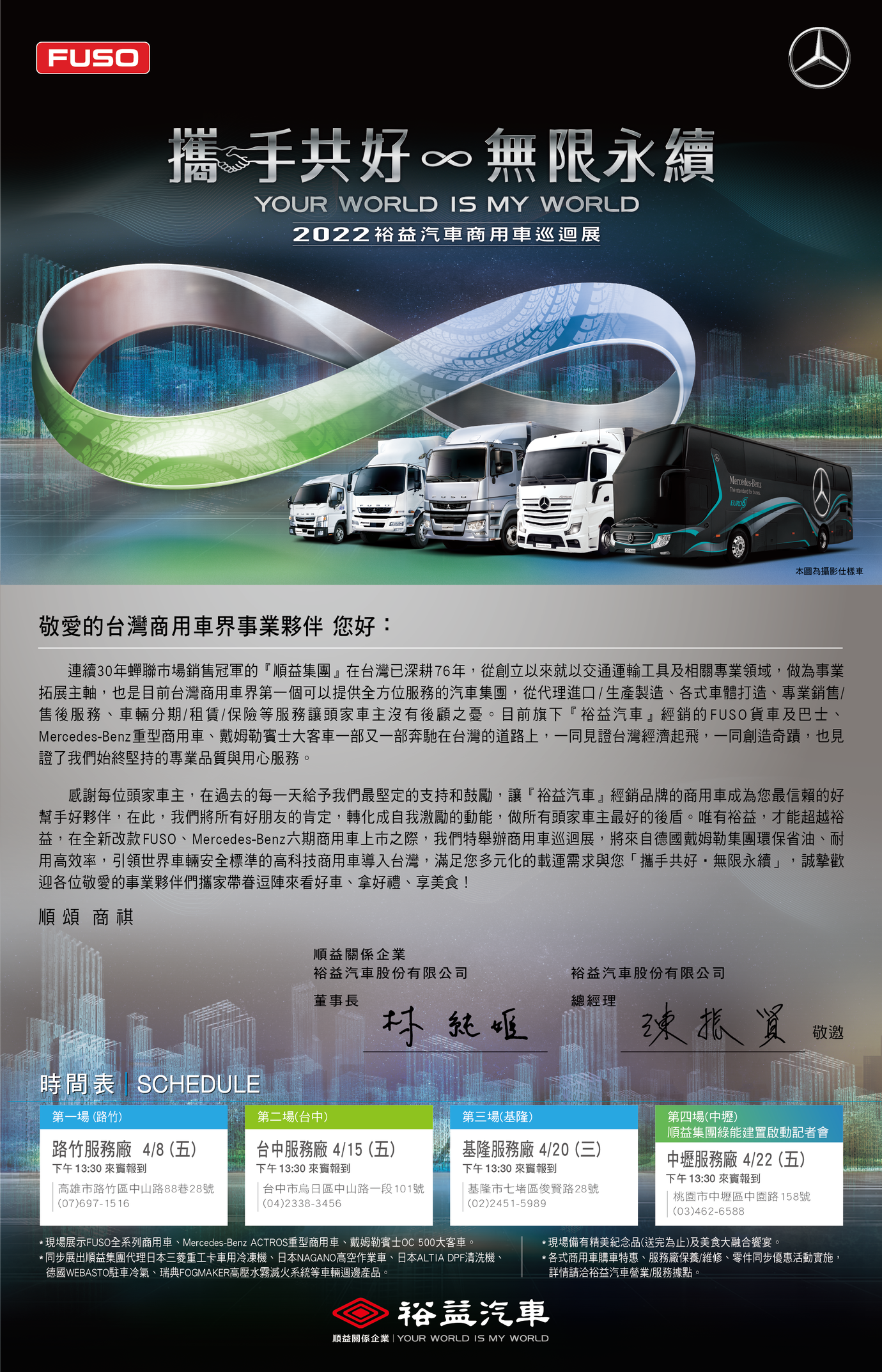 「攜手共好‧無限永續」2022年裕益汽車商用車巡迴展,FUSO、Mercedes-Benz六期商用車上市