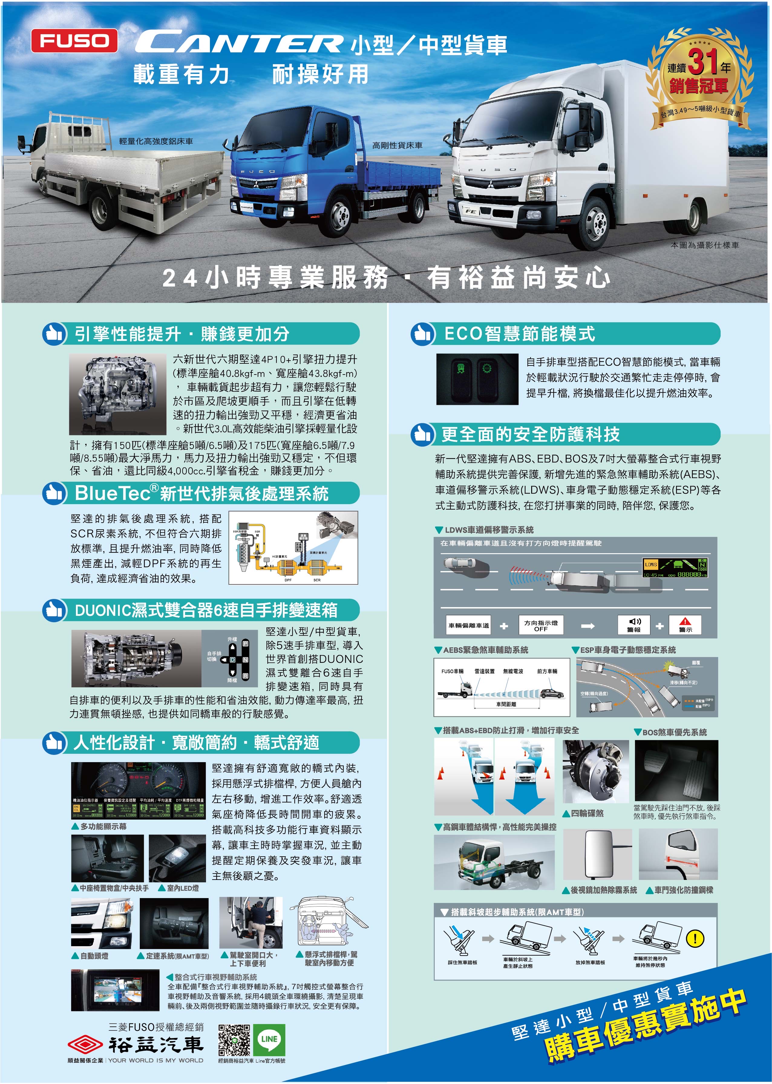 在疫情解除、社會回歸新常態之際,三菱FUSO台灣總經銷『裕益汽車』為了讓更多頭家車主能輕鬆體驗FUSO CANTER 5噸小貨車,並滿足頭家車主就近賞車的需求,於2023年05月起啟動FUSO CANTER 5噸小貨車行動據點,進行更便利性的戶外推展與試乘/試駕體驗,歡迎各地貴賓蒞臨鑑賞與體驗CANTER 5噸小貨車的載重有力及耐操好用。各場次詳細資訊,請詳見下方表格。此外,『裕益汽車』同步歡慶日本FUSO原廠CANTER 60年,推出即日起訂購CANTER 5噸小貨車,只要在6月30日前領牌,就送5萬公里(5次)免費保養及2萬元中油柴油加油金,舊換新再加碼1萬元購車金,用實際行動與頭家車主及社會大眾「鬥陣打拼‧你好就是我好」,現在買FUSO CANTER正是最佳時機,更多購車特惠訊息詳情請洽裕益汽車。
