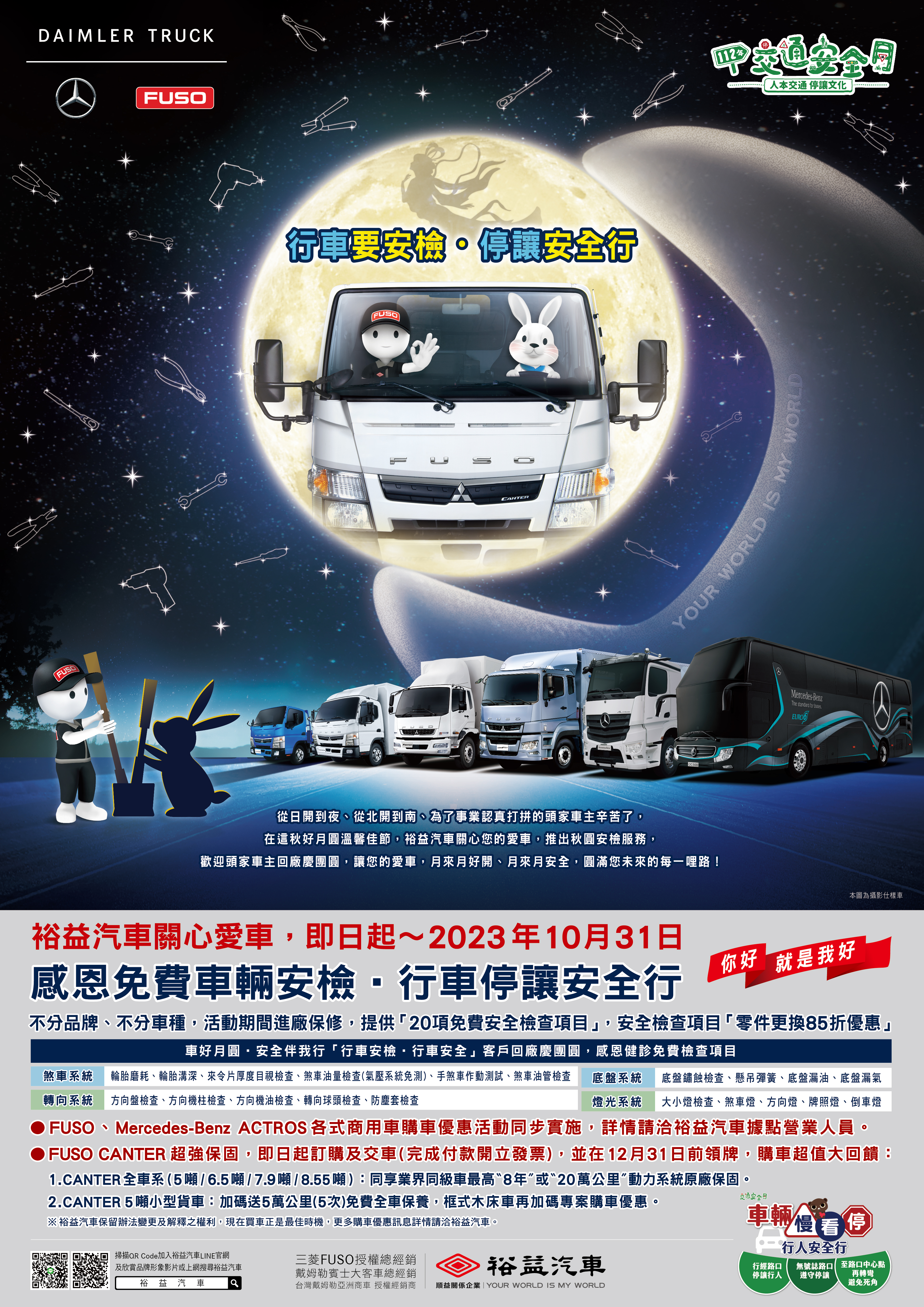 裕益汽車「行車要安檢‧停讓安全行」優惠專案【2023.09.11~10.31】