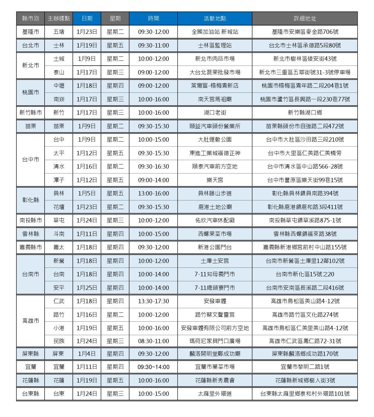 2024年01月FUSO CANTER 5噸小貨車行動據點,歡迎試乘/預約試駕 三菱FUSO台灣總經銷『裕益汽車』為了讓更多頭家車主能輕鬆體驗FUSO CANTER 5噸小貨車,並滿足頭家車主就近賞車的需求,於2023年05月起啟動FUSO CANTER 5噸小貨車行動據點,進行更便利性的戶外推展與試乘/試駕體驗,歡迎各地貴賓蒞臨鑑賞與體驗CANTER 5噸小貨車的載重有力及耐操好用。各場次詳細資訊,請詳見下方表格。