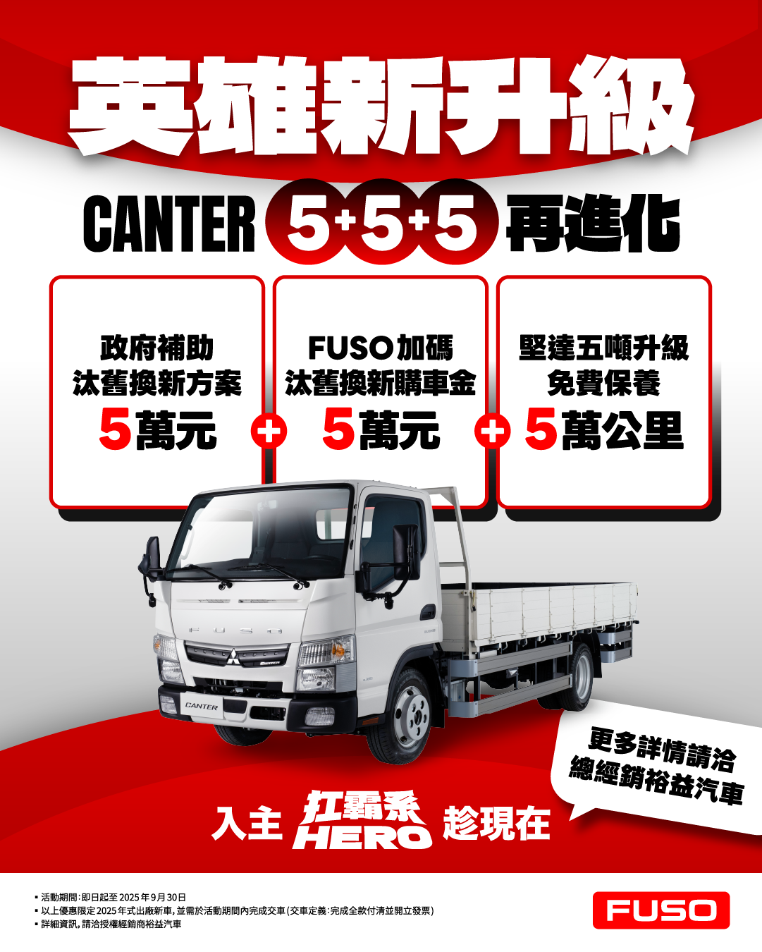 ▸ FUSO 專屬優惠|再加碼 5 萬元汰舊換新購車金