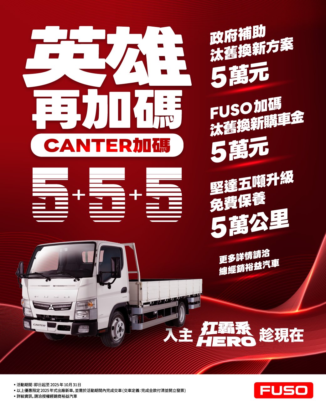 FUSO 堅達五噸限時推出「5+5+5」三重好禮