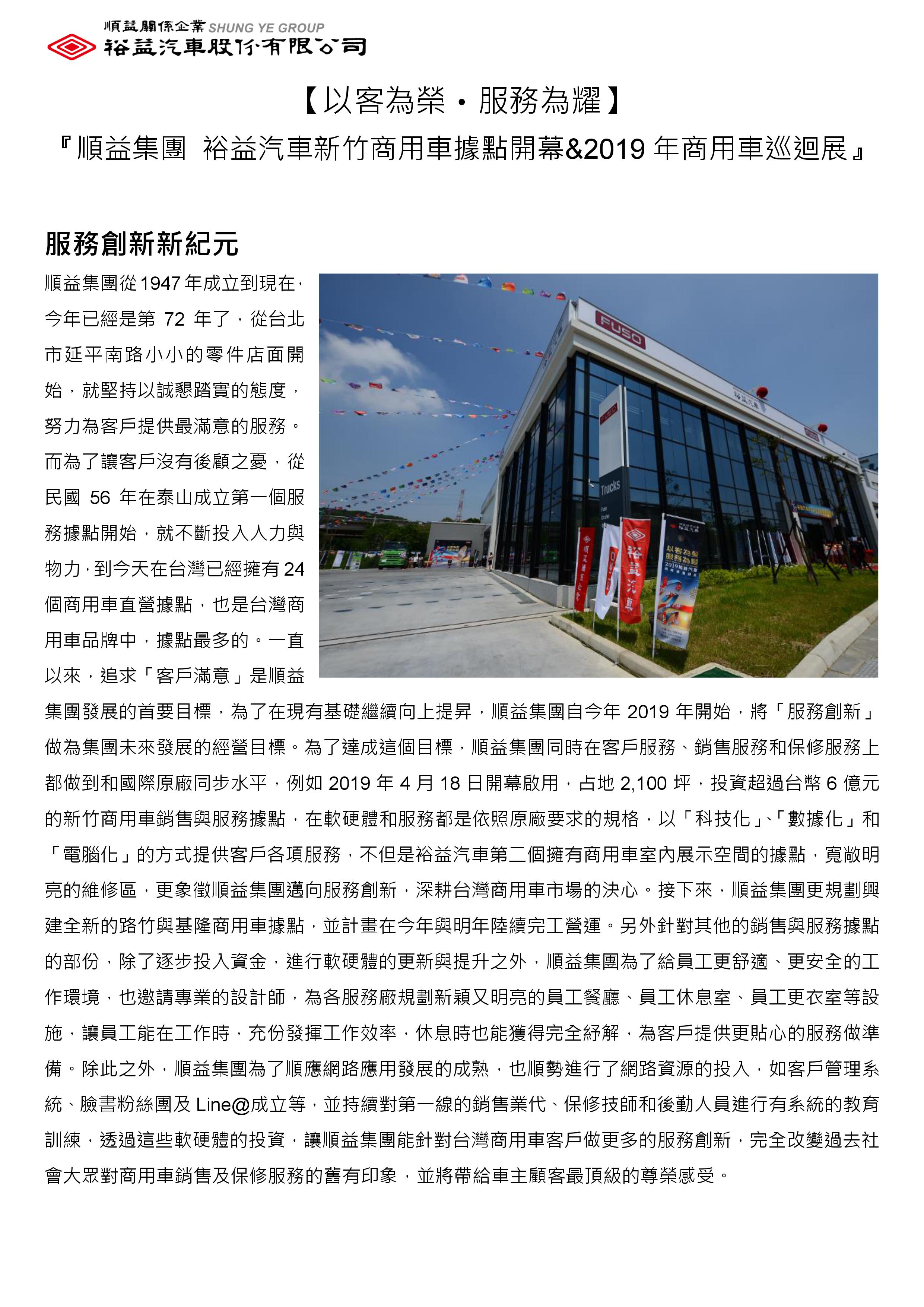 【以客為榮‧服務為耀】順益集團 裕益汽車新竹商用車據點開幕&2019年商用車巡迴展